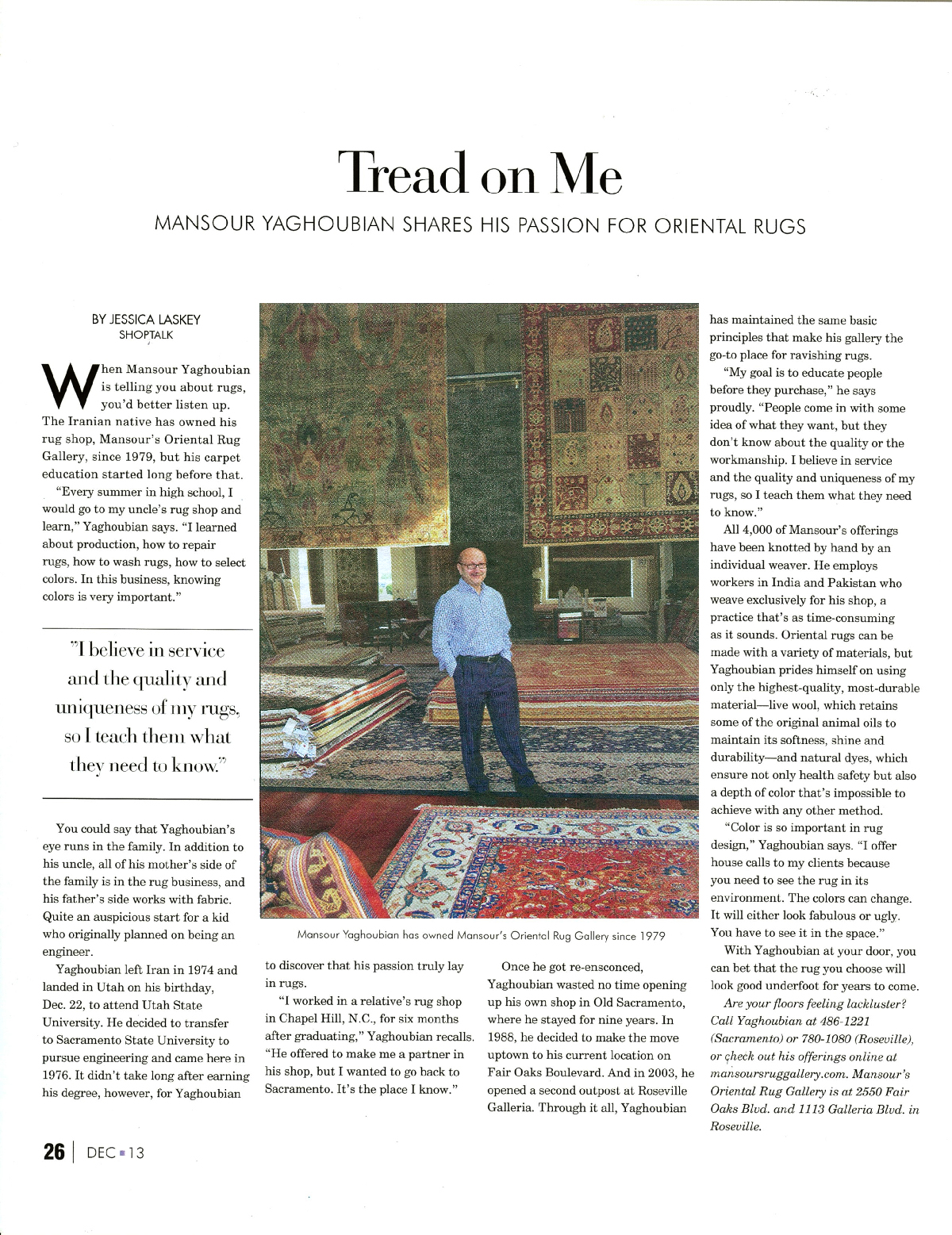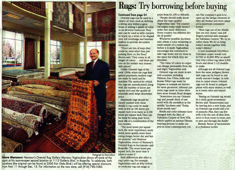The Sacramento Business Journal’s interview with Mansour took a look at Mansour’s personal connection the antique rugs he sells